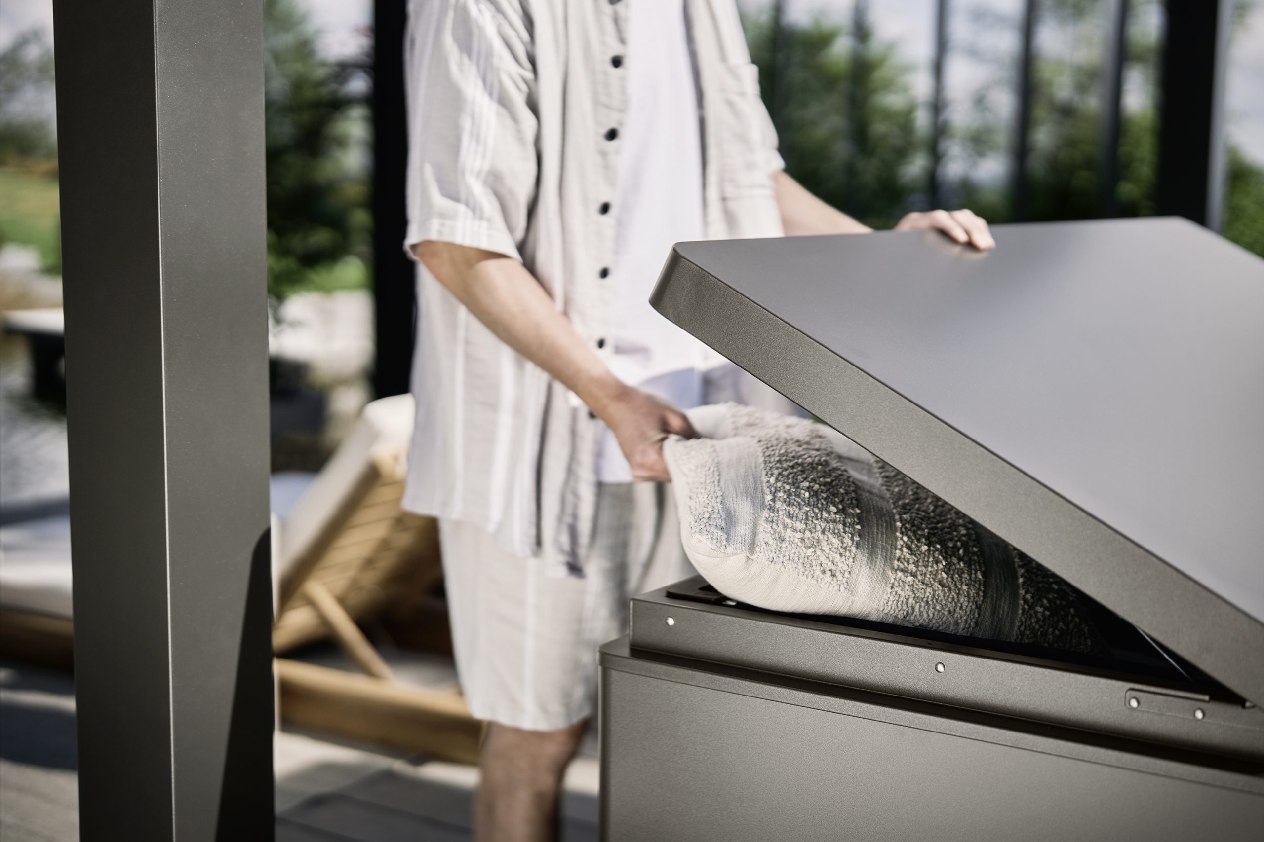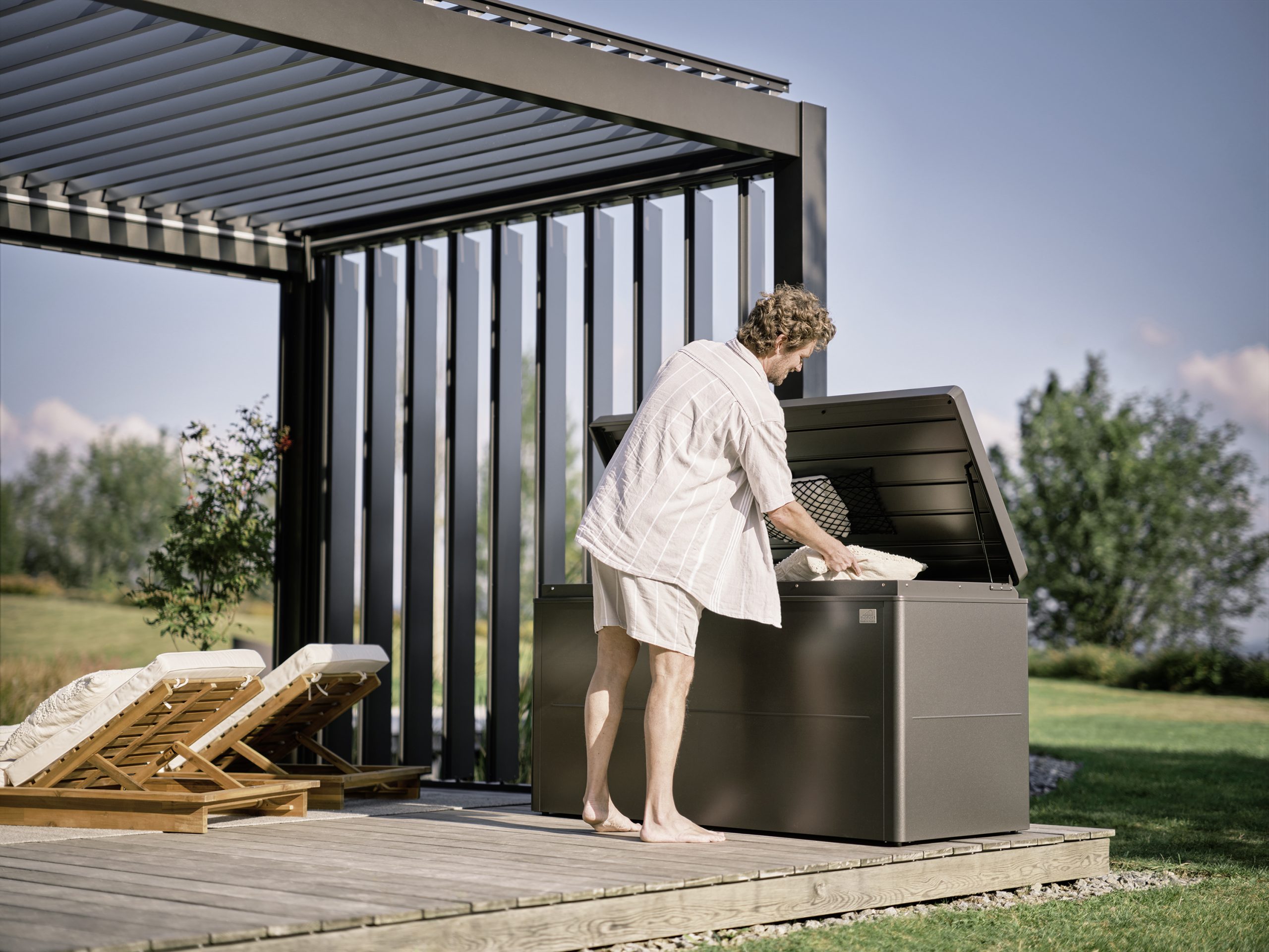 Stílusos, időtlen elegancia. A Biohort LoungeBox® prémium tároló láda tökéletes ülőpárnák és sok más dolog tárolására, amelyeknek máshol nincs helyük. A megnyerő külsőnek köszönhetően minden teraszra tökéletes választás.