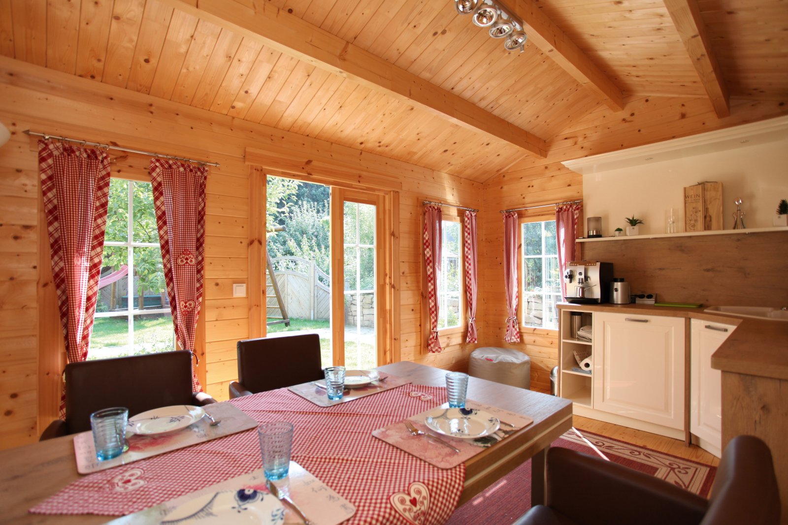 Az itt látható gerendaház tavasztól őszig komfortos hétvégi pihenőháza lesz családjának.