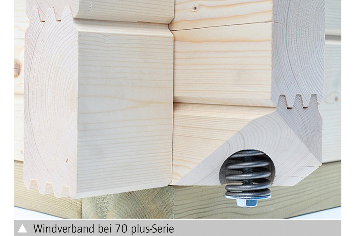 - A 45 mm falvastagsághoz 19 mm vastag padlózat és tetőlambéria, a 70 mm falvastagsághoz 28 mm vastag tömörfa padlózat és tetőlambéria tartozik.