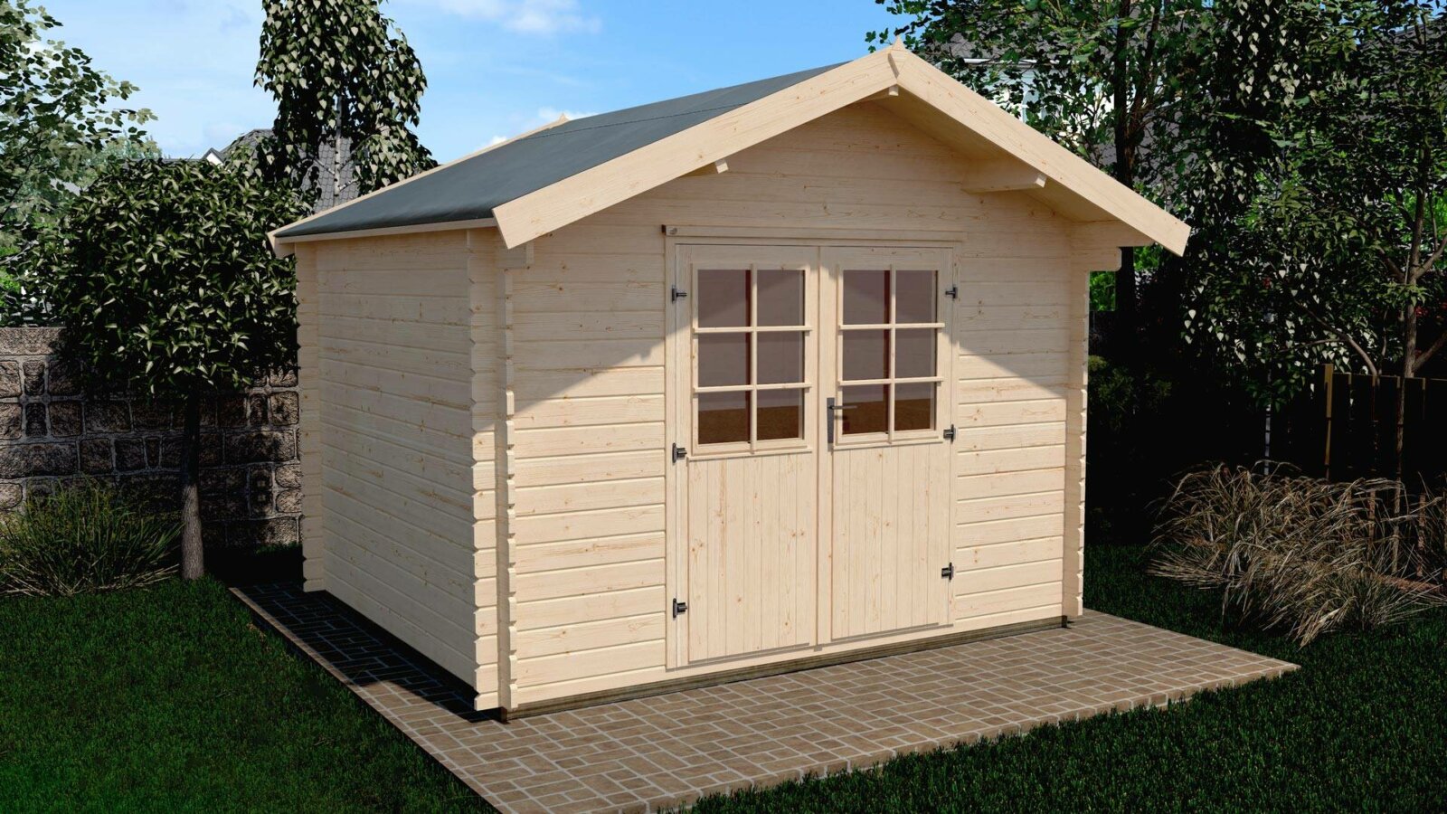 Kétszárnyú ajtóval szerelt masszív 28 mm vastag falakkal épülő akciós szerszámtároló faházunk adatai: