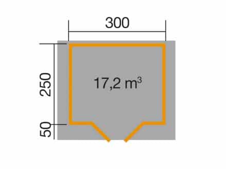 Szerszámos faház oldalfalainak külső sarokmérete a kiválasztott méret szerint 200 x 200 cm vagy 250 x 250 cm vagy 300 x 250 cm-es vagy 300 x 300 cm-es méretben is rendelhető.