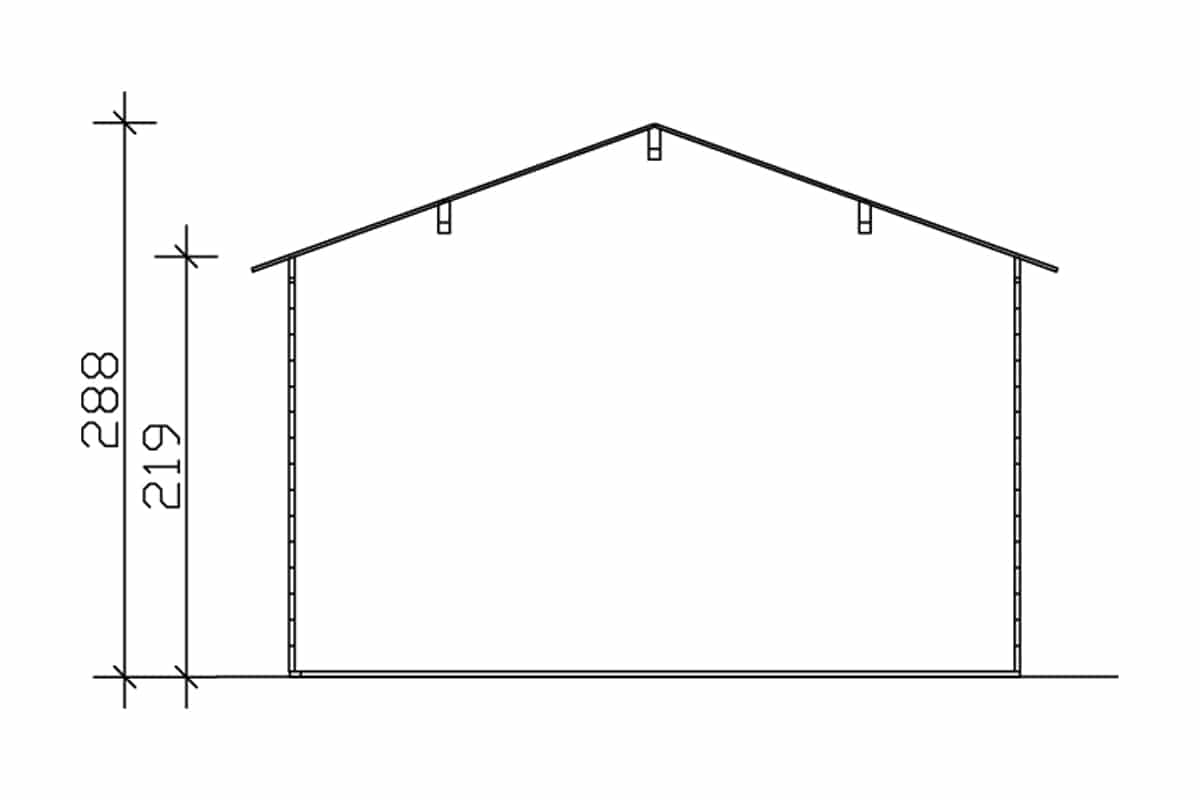 - Faház orom magassága: 288 cm; Oldalfal magasság 219 cm