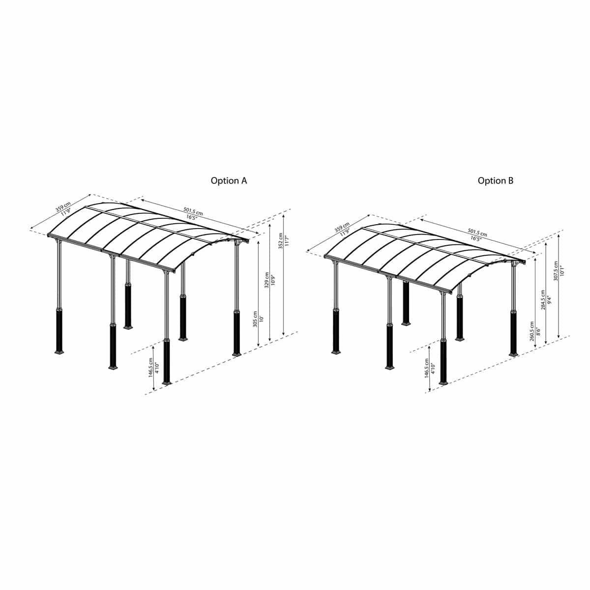 - Arcadia választható garázstető méretek 430 x 359 cm vagy 502 x 359 cm vagy 644 x 359 cm vagy 858 x 359 cm méretben. Maximális belső magasság méretet 219 cm vagy 329 cm közül tud választani.