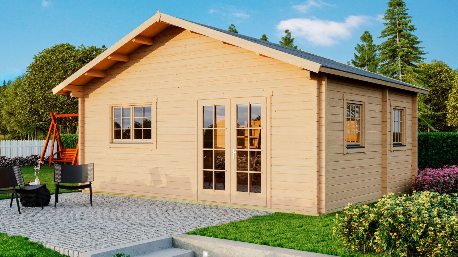 - Hétvégi faház 28 mm padlózattal és 18 mm vastag tető lambériával