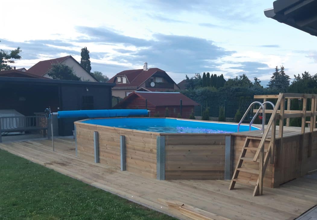 Kitűnő választás azoknak, akik nem szeretnének nagyságrenddel több pénzt költeni kerti medencére, de a felfújható medence típusokat már megunták-kisgyerekes családoknak (kutya, macska gyerek nem tud belesni a medencébe)-természetes, kertbe illő természetes tömörfa gerendaváz-2 munkanap alatt készre szerelhető, beüzemelt “privát strandot” adunk Önnek.