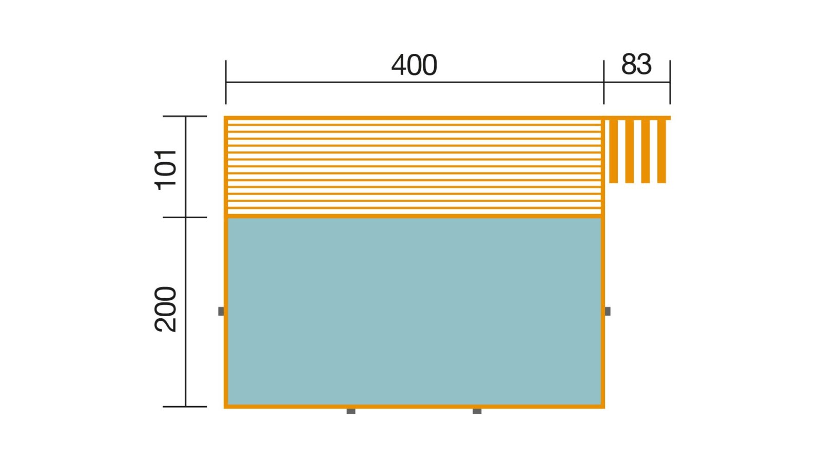 - Tényleges medence méret gépház nélkül 400 x 200 cm, lásd mellékelt alaprajz szerint