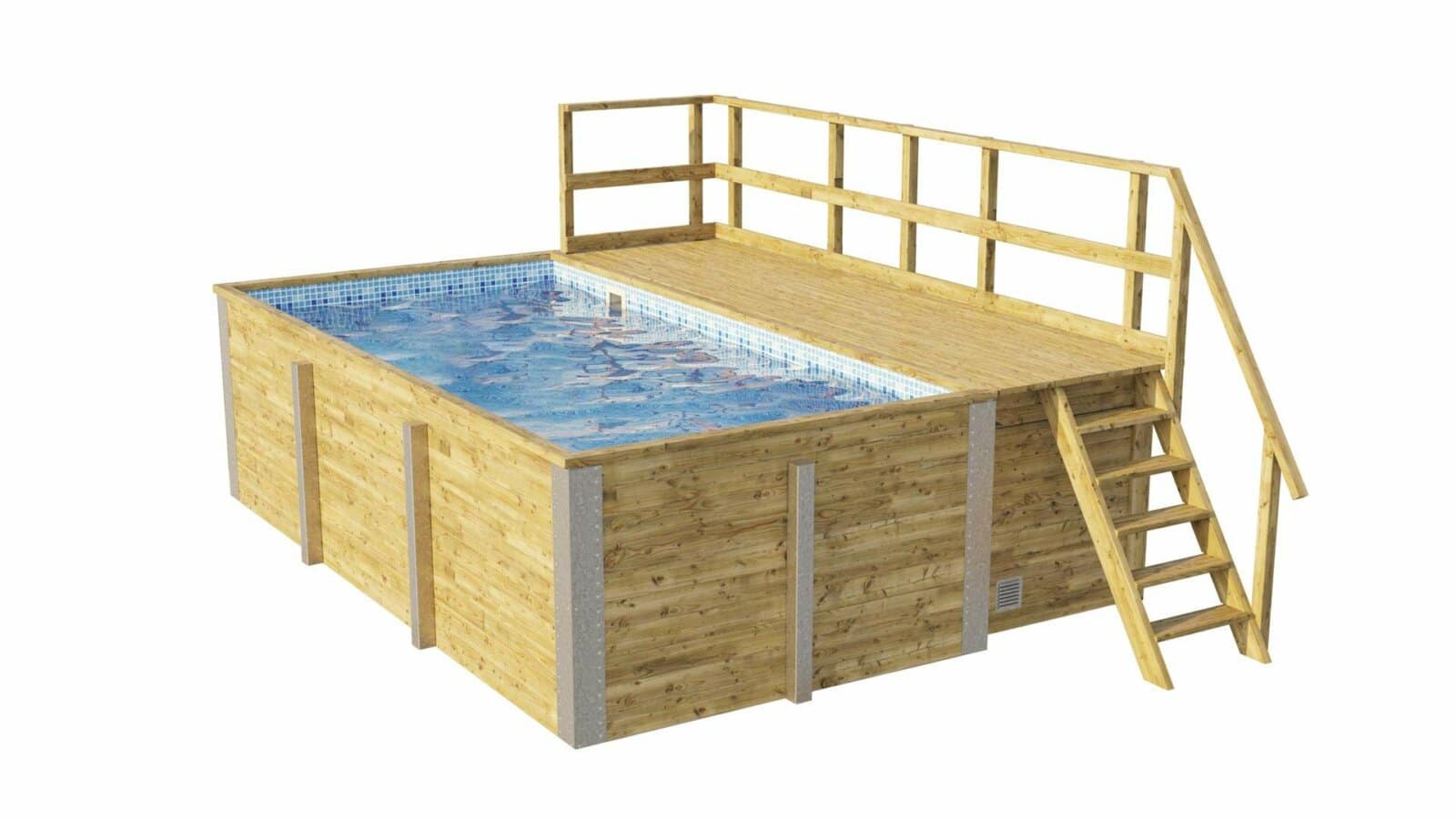 - Felszín feletti, gyorsan építhető Weka gerendavázas kültéri medence, négyszögletű kivitel
