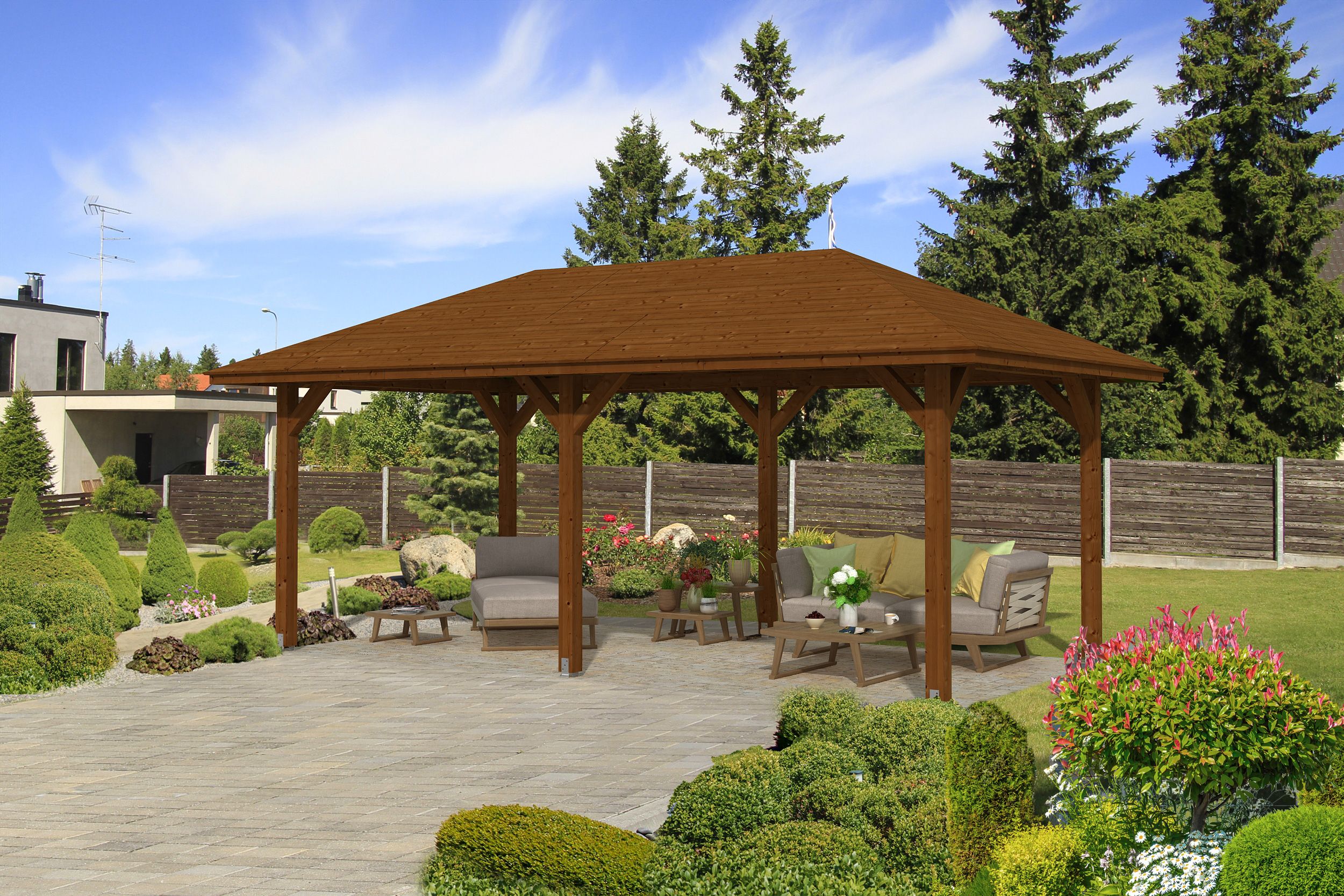 Orleans prémium kerti pavilon építés 4-méretben, ragasztott faanyagból, sátortetős kivitelben.
