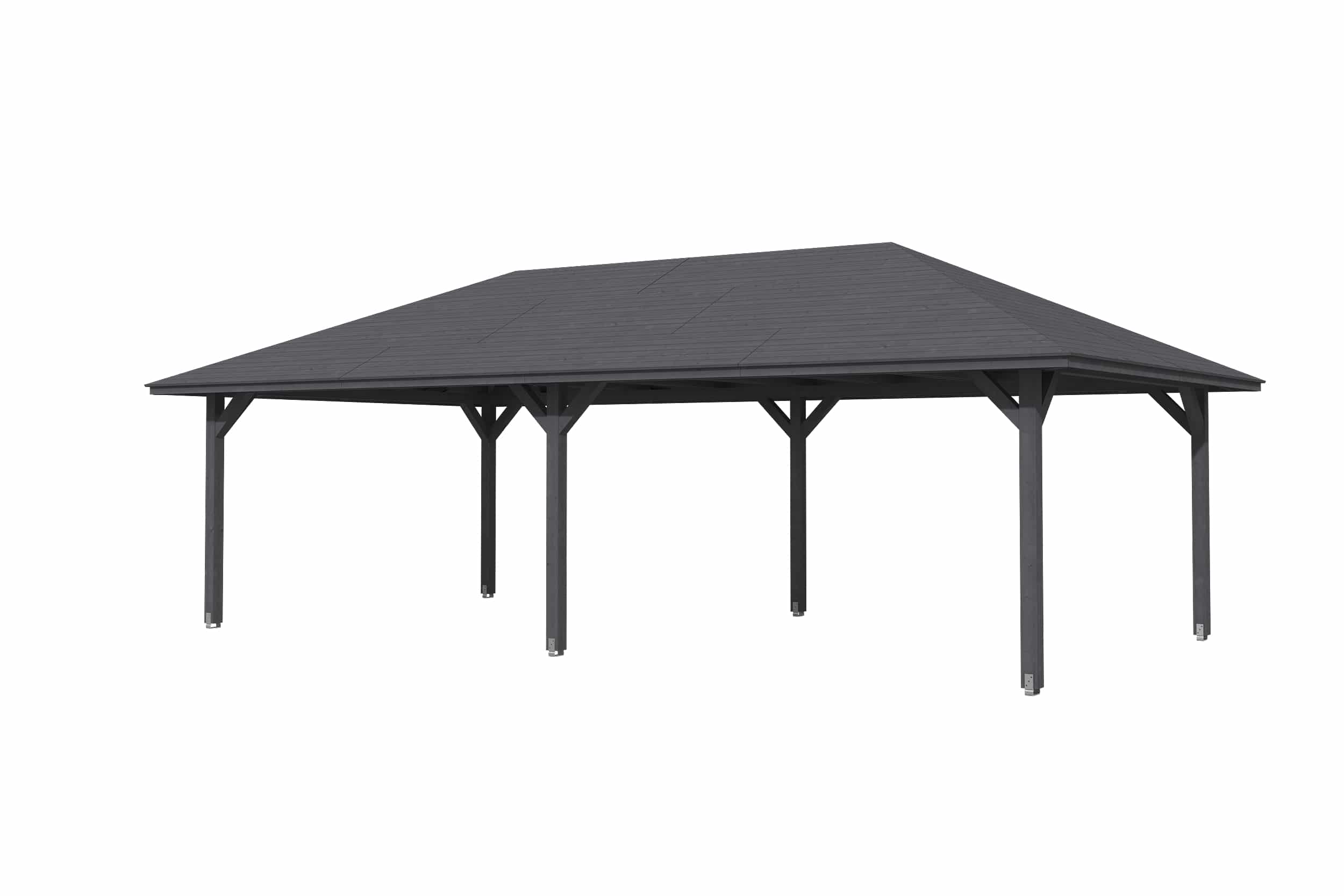 Orleans típusú nyitott garázs vagy kész kerti pavilon 4- méretben rendelhető. A fenti fotó melletti választógomb segítségével tudja kijelölni a kívánt alapméretű szaletlit: 374 x 656 cm vagy 439 x 786 cm vagy 504 x 916 cm vagy 569 x 1046 cm óriás méretben is