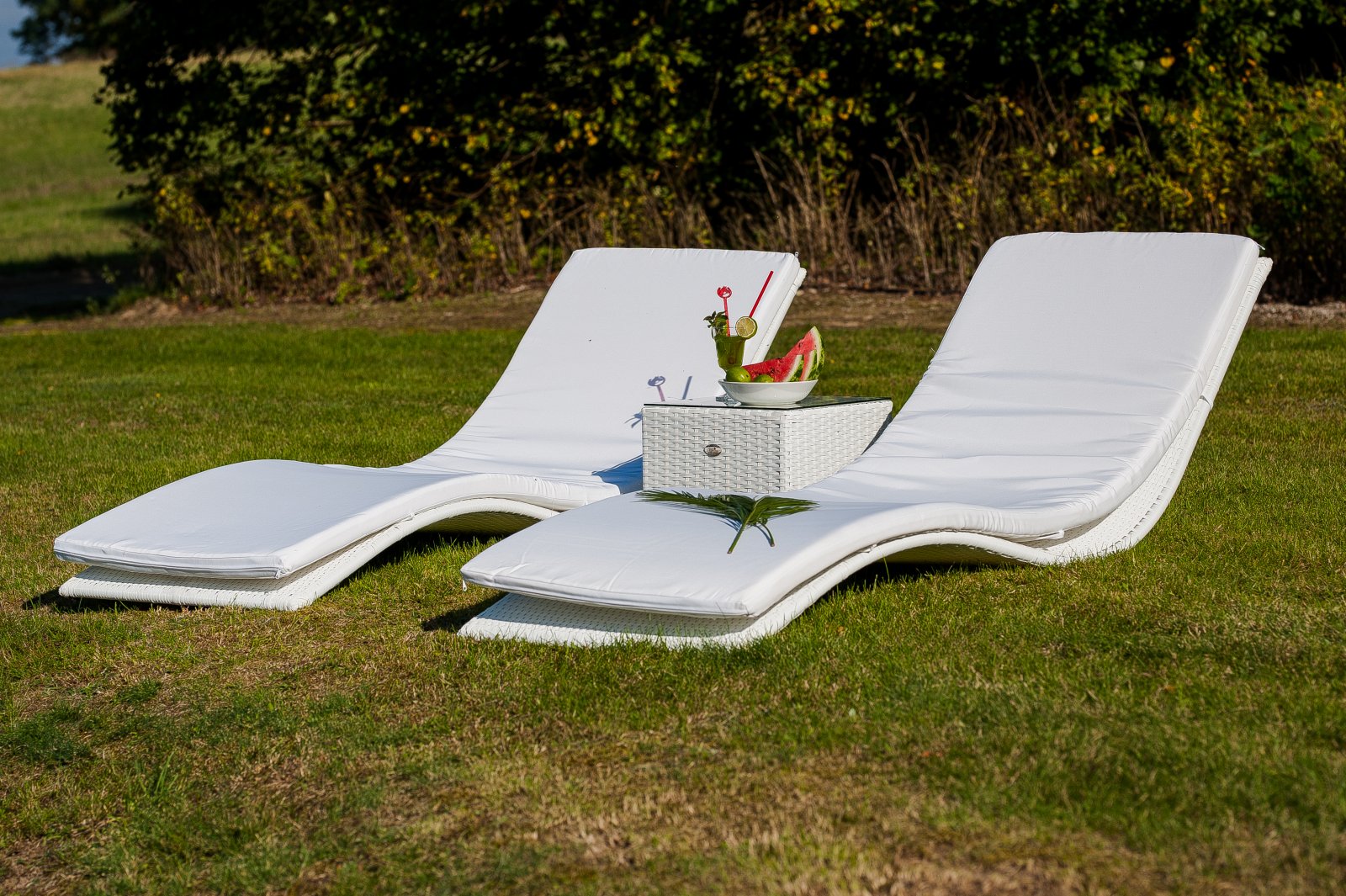 - Successo rattan napozóágy teljes garnitúra, azaz 2 db napozóágy +1 db üveglapos asztal 40 x 40 x 32 cm mértben 5 mm vastag edzett üveglappal