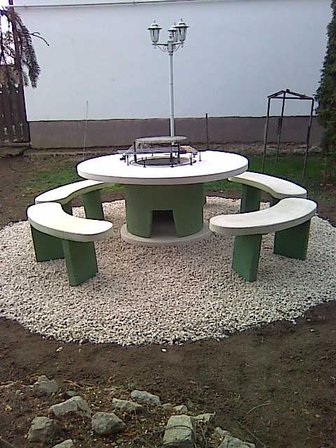 Szalonnasütő bográcsozó gyártása műkőből, többféle színben.