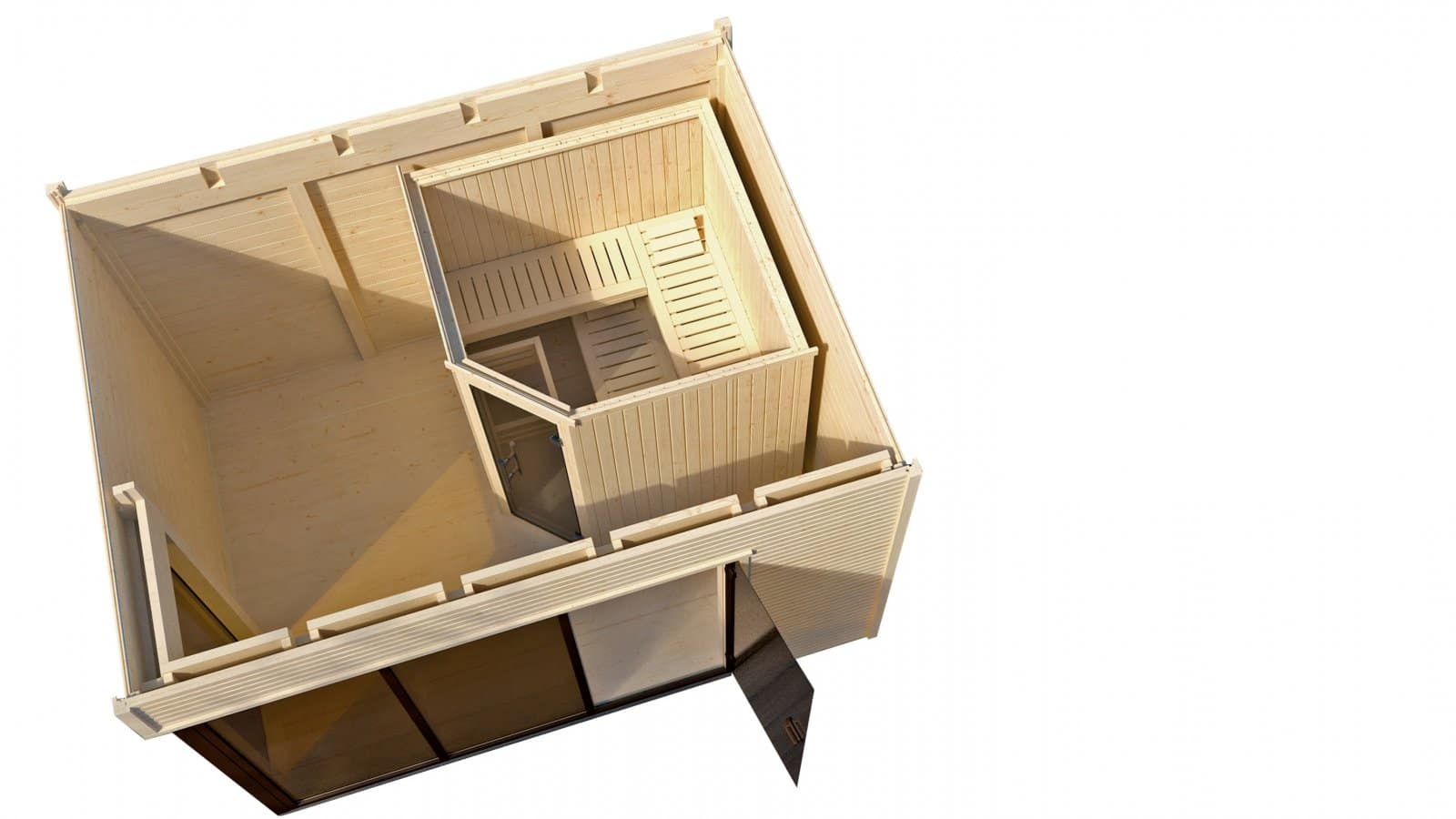 45 mm vastag gerendavázas szaunaház, minimál stílusú szaunaház