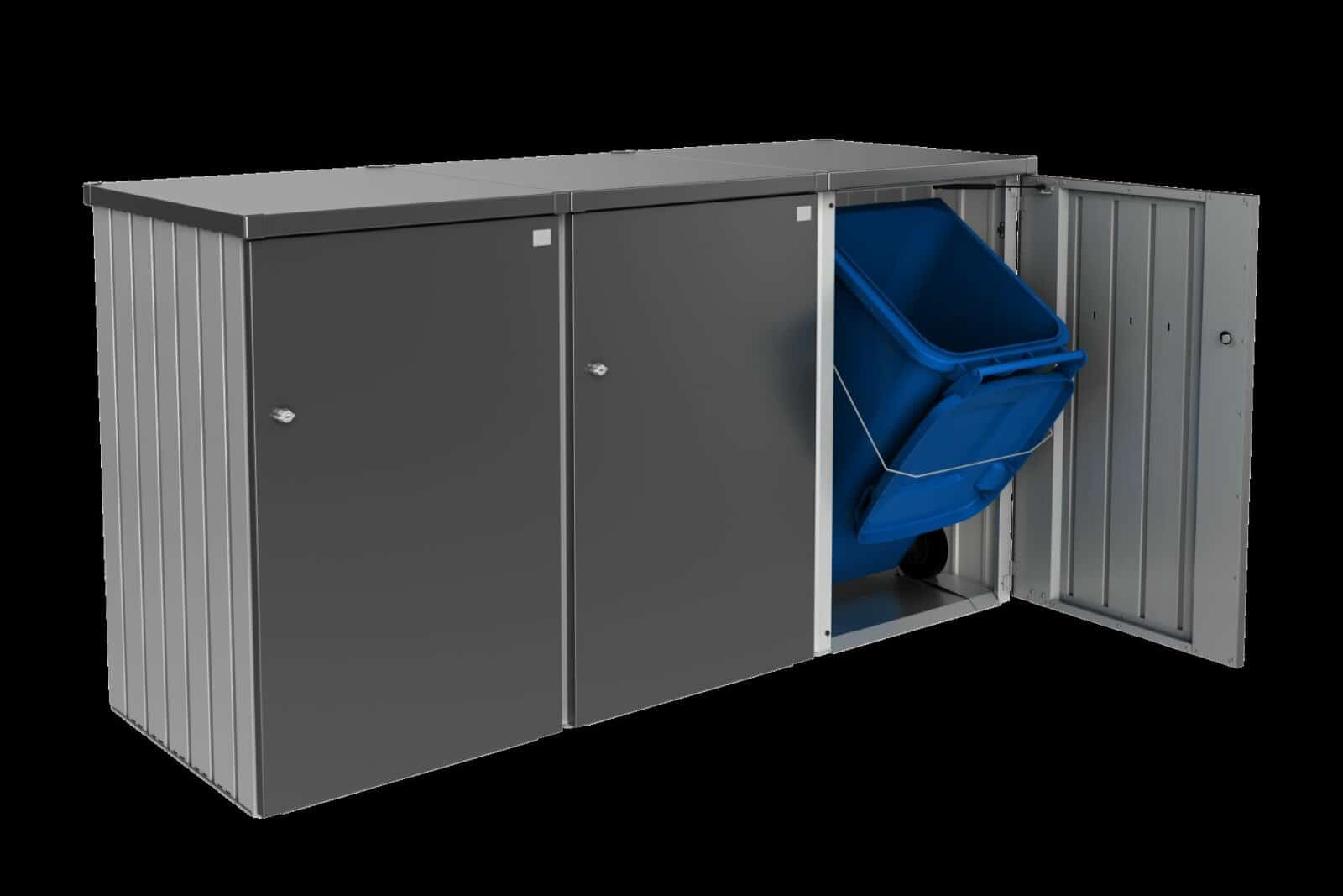 Szemeteskuka tároló fémből. Biohort Alex sorolható szelektív kukatároló