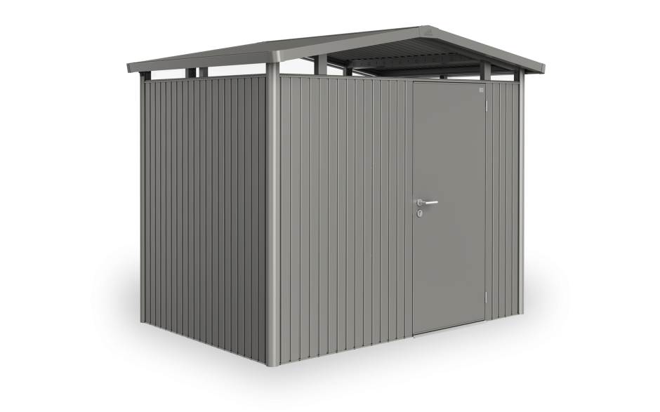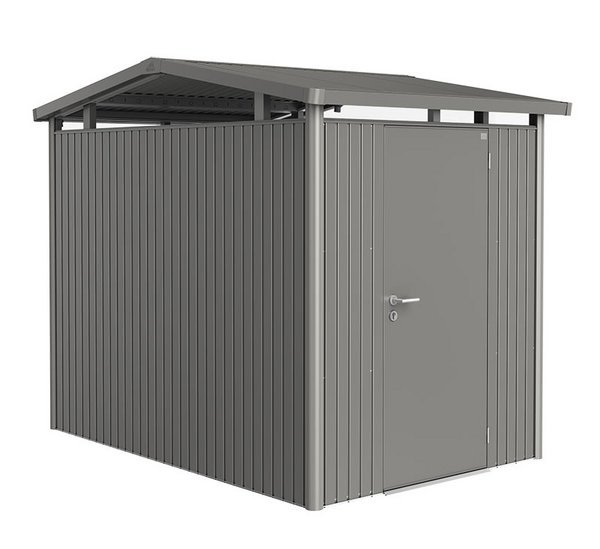 Biohort Panorama fém kerti ház. Igényes fém szerszámtároló építés felülvilágító ablaksorral
