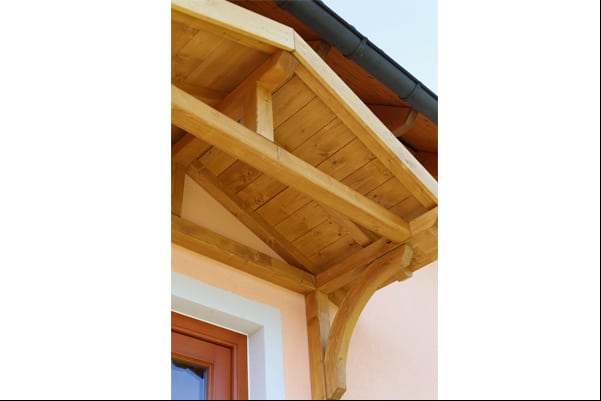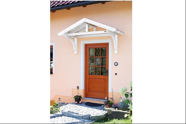 - A konzolszerkezet minőségi gyalult és fózolt natúr fenyő faanyagból készült bejárati esővédő előtető