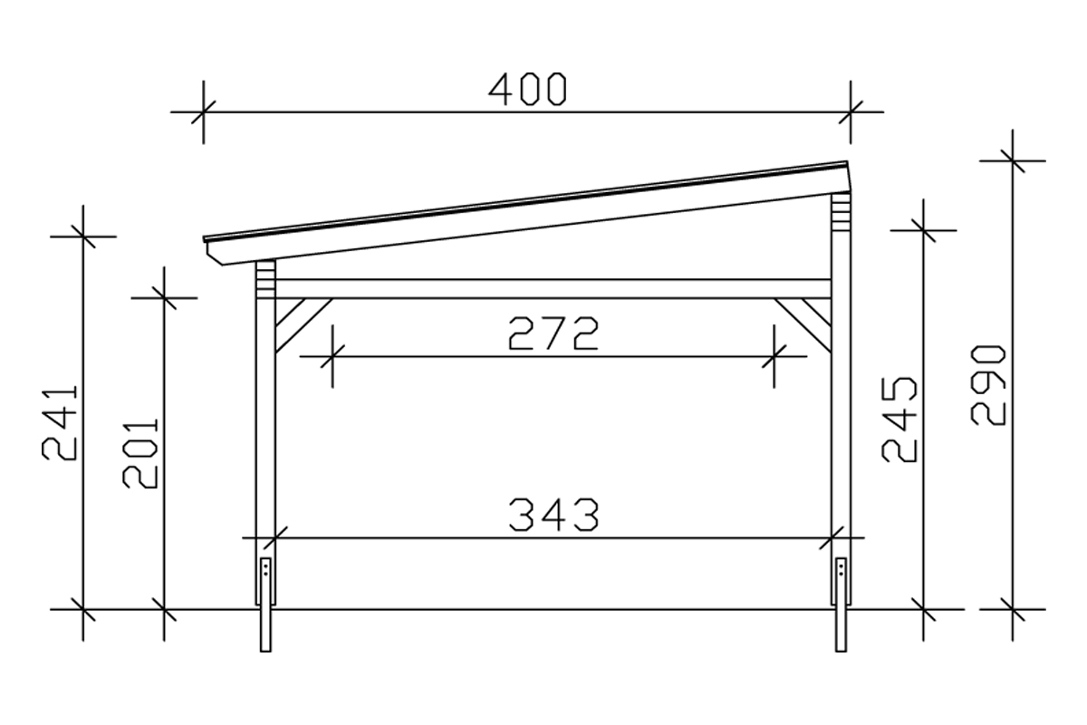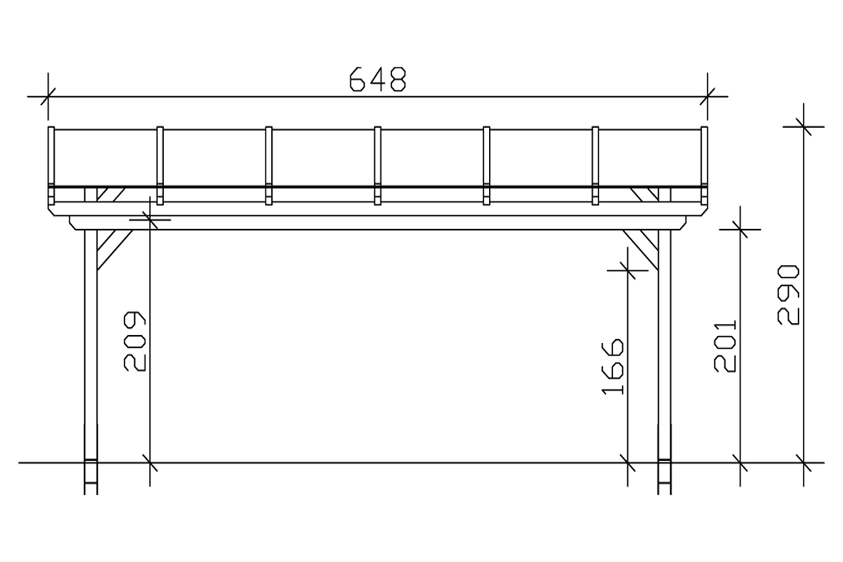 Terasz tető vagy nyitott garázs 648 x 400 cm vagy 648 x 300cm méretben 201/2-es típus 4db pilléren