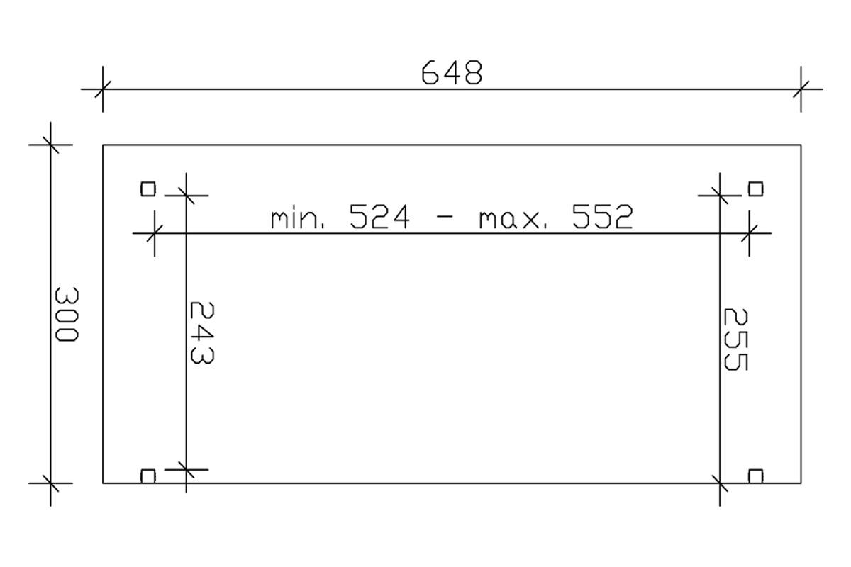 - 648 x 400 cm vagy 648×350 cm vagy 648 x 300 cm vagy 648 x 250cm tetőfelülettel, a kiválasztott mérettől függően amely terasz tetőként vagy nyitott garázsként is használható. A kívánt méret a fenti fotó melletti választógomb segítségével jelölhető ki.