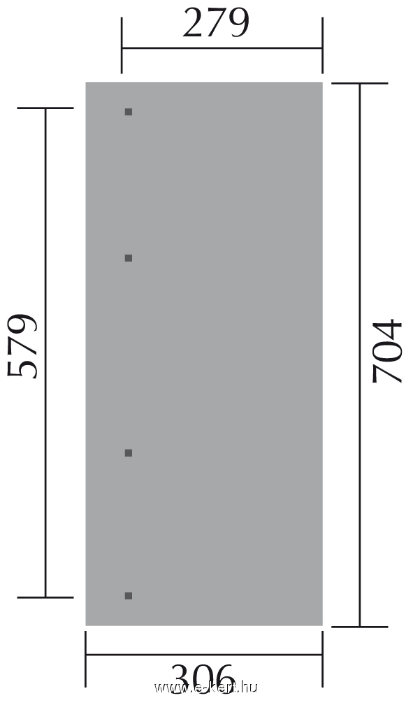 - Terasz méretek az eresztúllógásokkal együtt a kiválasztott mérettől függően: szélesség x mélység (azaz a fogadó falra merőleges terasztető méret): 300 x 250 cm vagy 424 x 257 cm vagy 424 x 306 cm vagy 514 x 306 cm vagy 704 x 306 cm