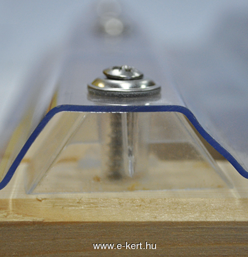 - Rögzítés formázott tömítőtárcsákkal rendelkező nemesacél bádogos csavarokkal