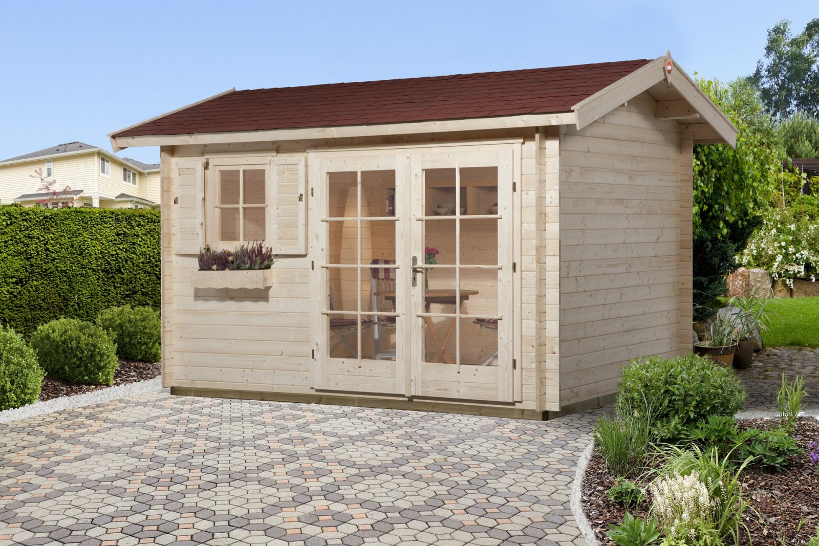 Ingolstadt masszív faház; 152-es típus; 380 x 300 cm; 45mm vastag falakkal