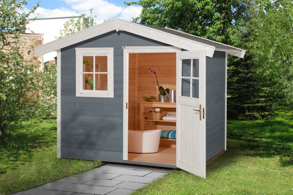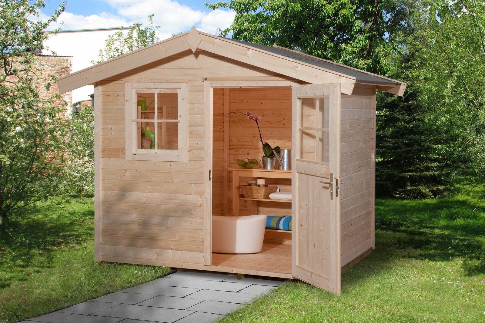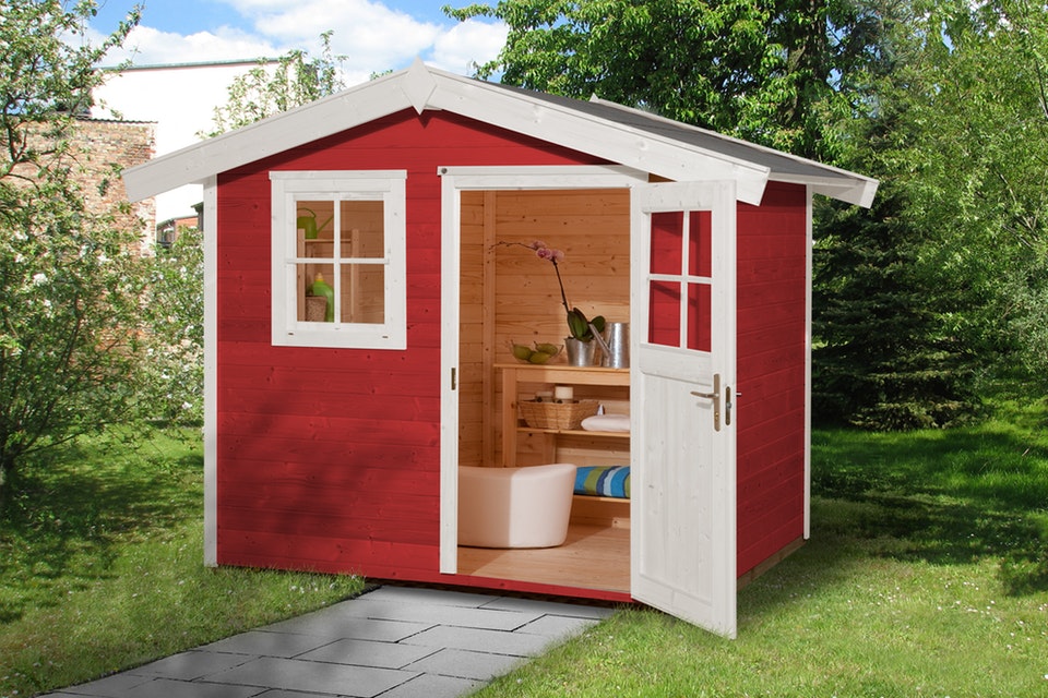 Weka 123-as szerszámos faház 5-méretben masszív 28 mm vastag oldalfalakkal, padlóval, egyszárnyú ajtóval és ablakkal