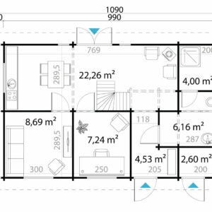 Masszív gerendafalú hétvégi faház építés 70 mm falvastagsággal. Varnamo hétvégi gerendaház, nyaraló faház építés.